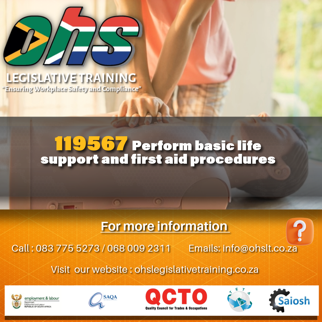 First Aid which is the most important, followed by OHS Representative, Fire Fighting and Evacuation planning, are the four “popular” OHS act compliance courses. Should you have machinery in the work environment, those who operate them need to be "Competent Persons"